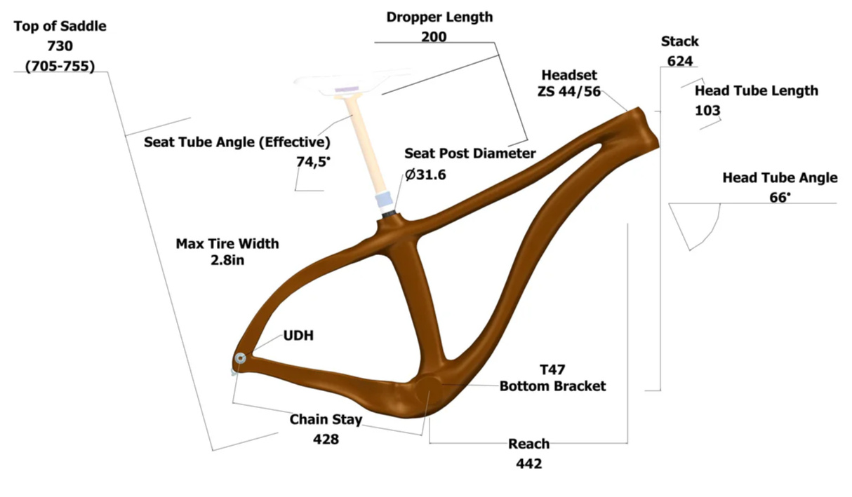 Build it out how you want to: boost spacing and drop stays give it a powerful base, completely clean with all internal routing, clearance for 2.6" tires, and pivoting, all carbon UDH dropouts that are made in house.