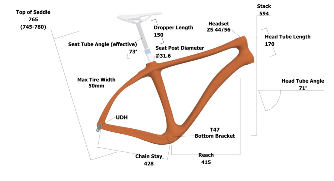 50c tire clearance, dropper compatibility, internal routing. This frame handles everything from gravel races to bikepacking to potholed city commutes without compromise.
