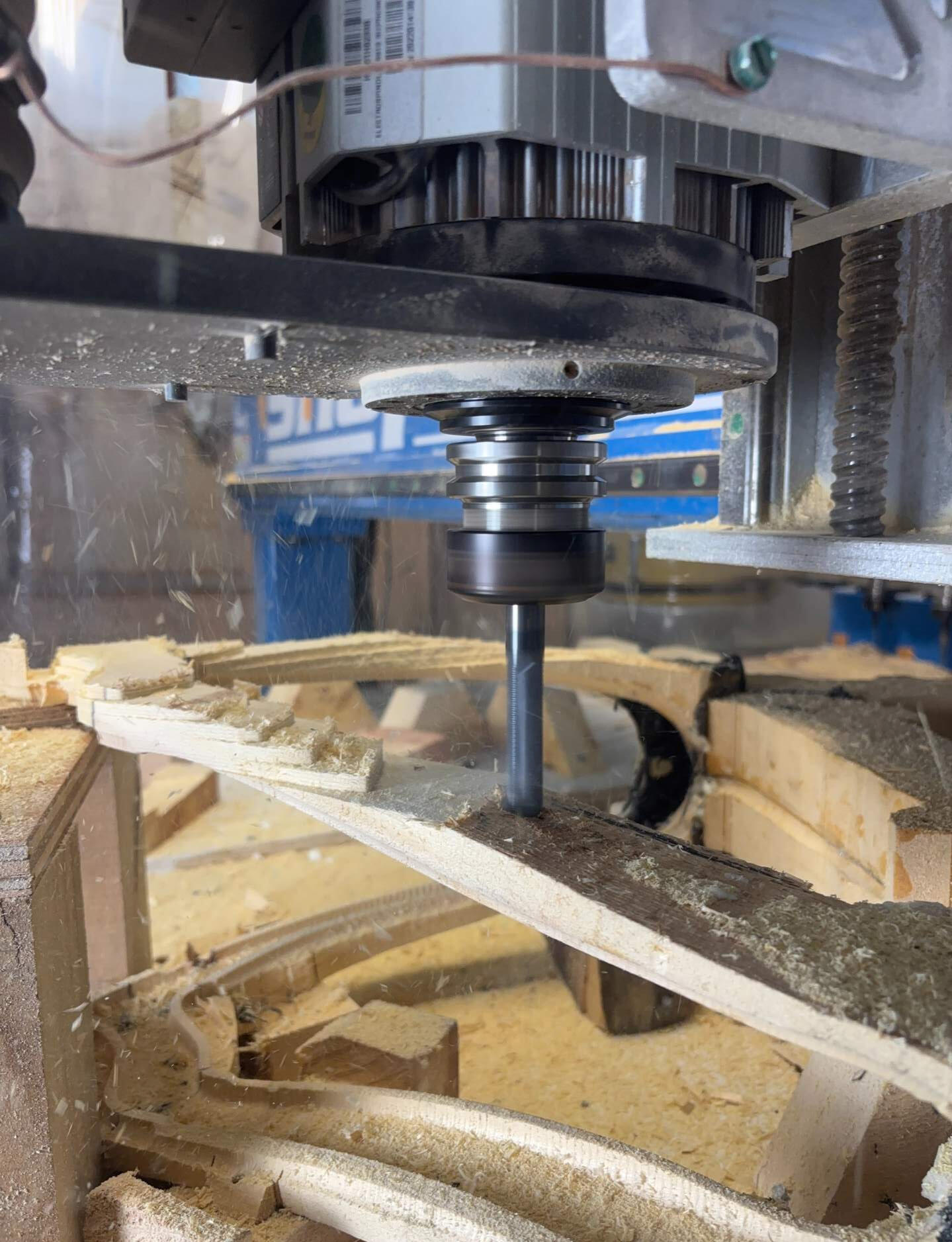 This room is the bridge between digital engineering and the physical bike-where CAD designs become tangible forms. We currently run two CNC routers: a trusty 4x4 Shopsabre that's been with us since the garage days, and a larger, more robust machine we added when we moved into our Philomath facility.