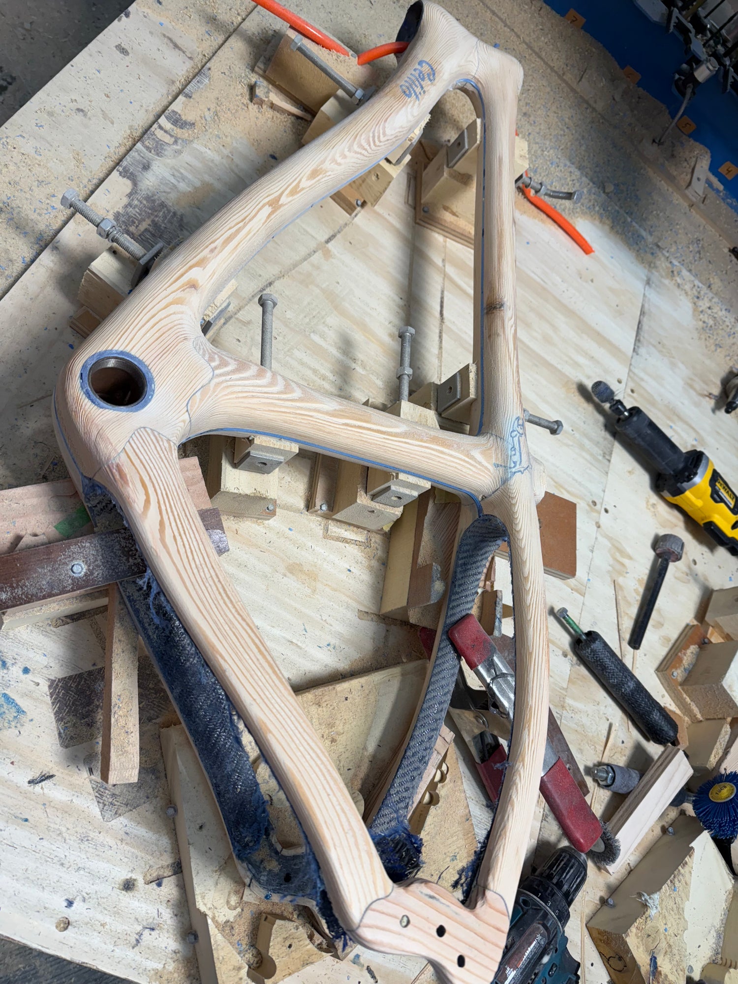 The Mackenzie is based on our gravel frame with the same geometry, but with a few simplifications to streamline the build. Simpler composite schedule, no dropper routing, fixed dropouts to name a couple. Super capable with clearance for huge tires, fenders, and an upright, playful riding position.