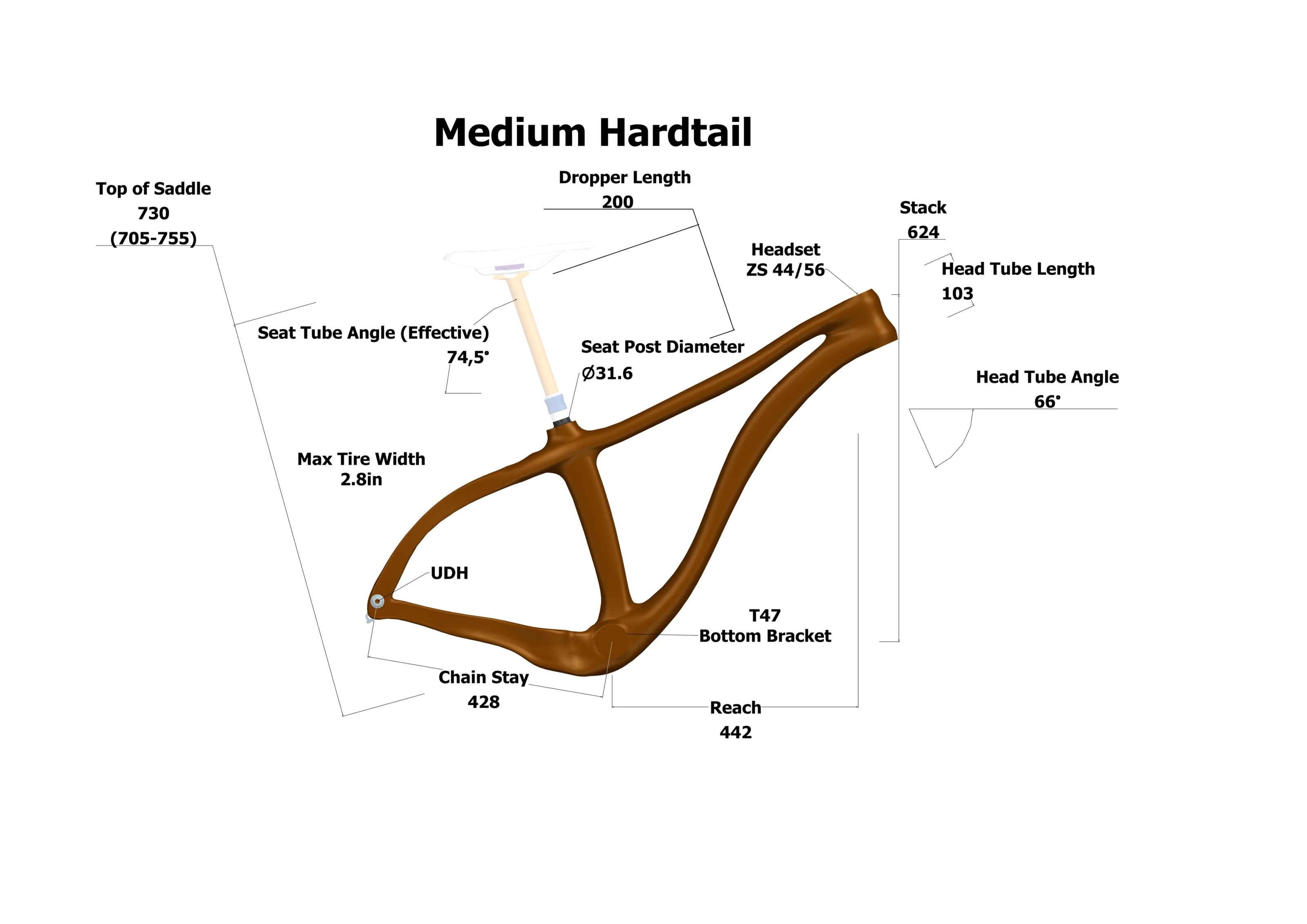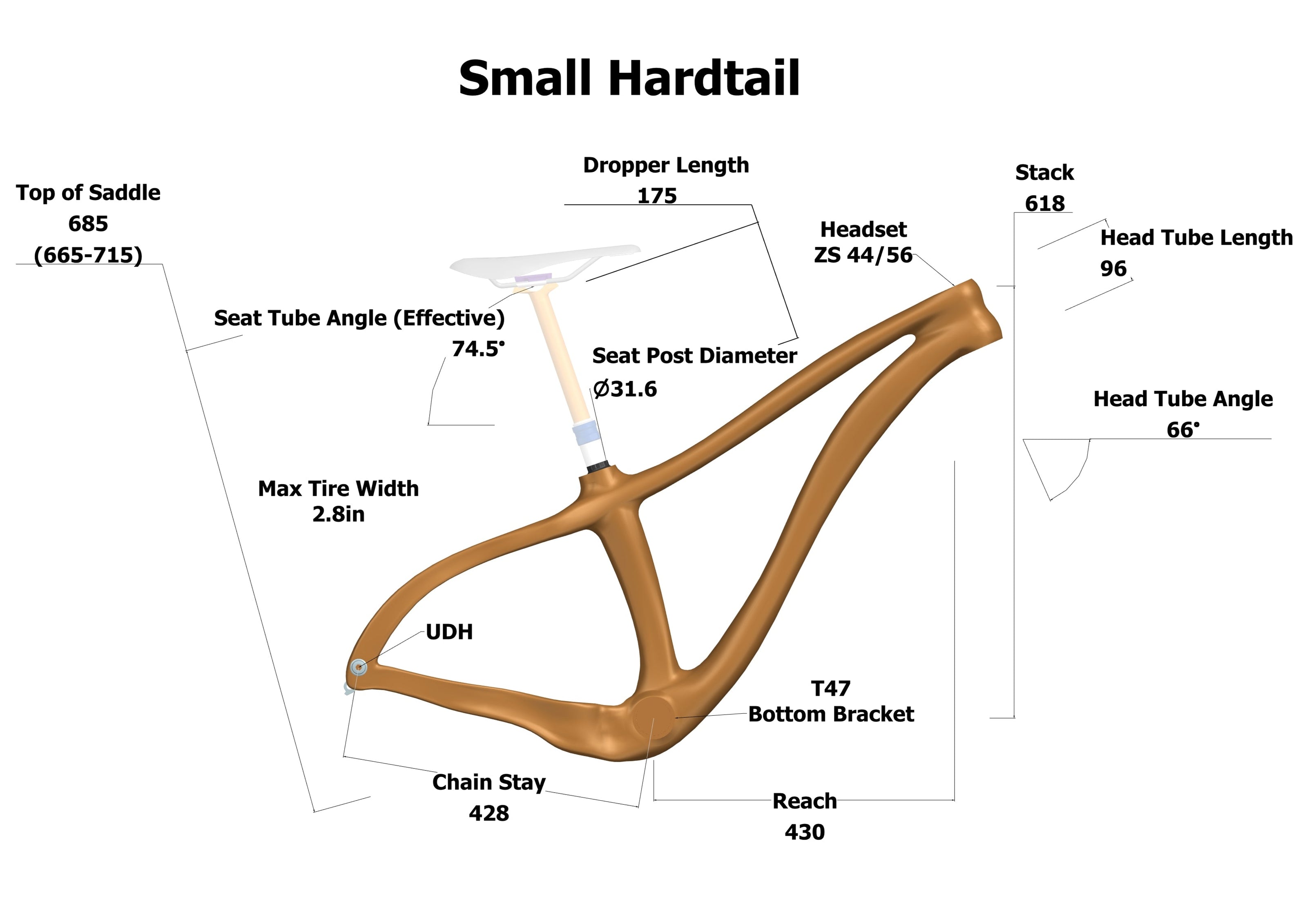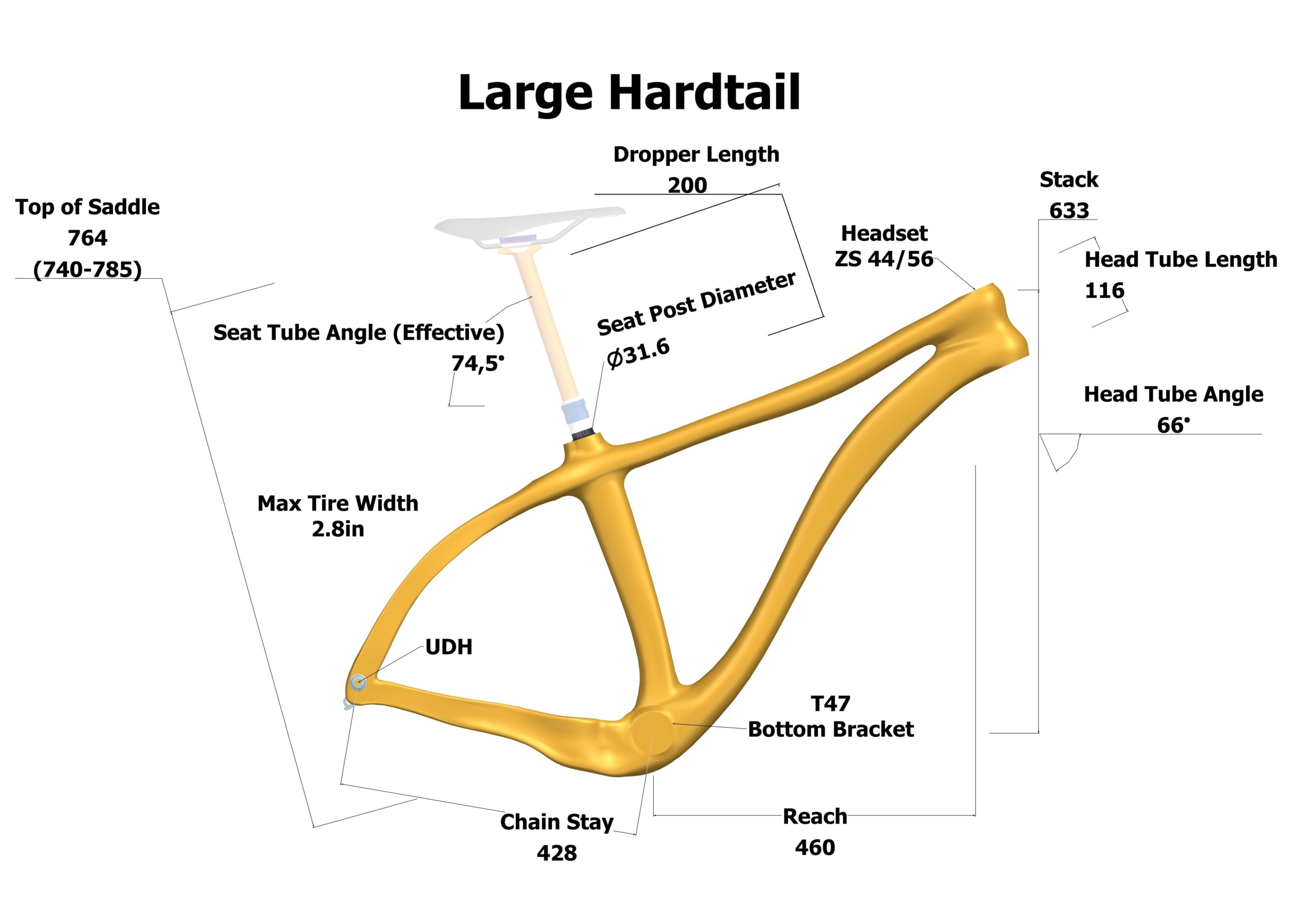 Our hardtail mountain bike is an XC/trail machine that rolls on big 2.6 rubber, and handles more than you think it should with poise. Short travel hardtail says XC, but huge tires and a rowdy ride yell all trail.