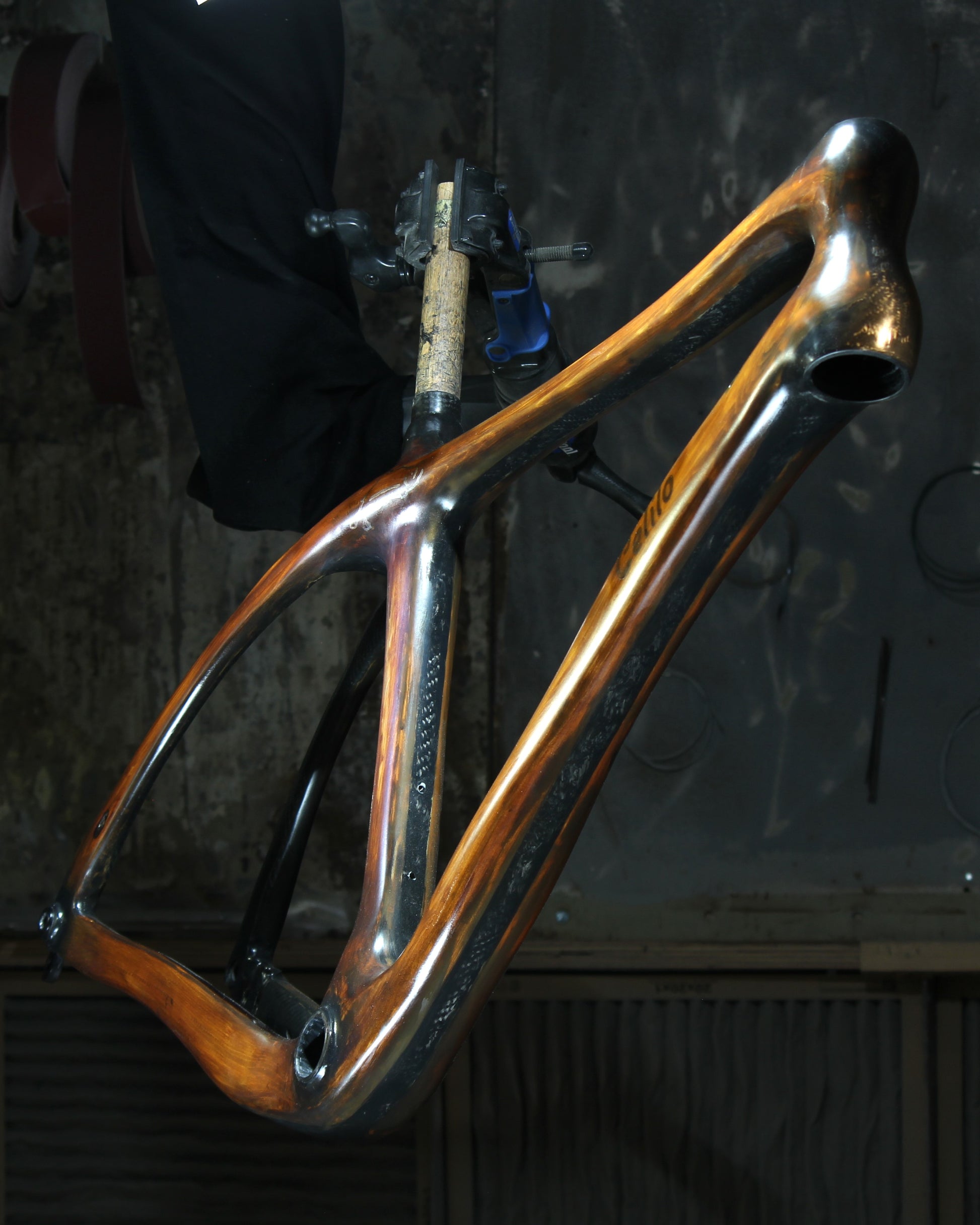 Our gravel bike frames (favorite) are designed to optimize comfort and stability on rough terrain that may include washboard, potholes, chip seal, and single track (roots, rocks, mud, ruts, …). The smooth ride provided by the wood frame, and rack/fender mounts make these frames great for adventures and bikepacking.