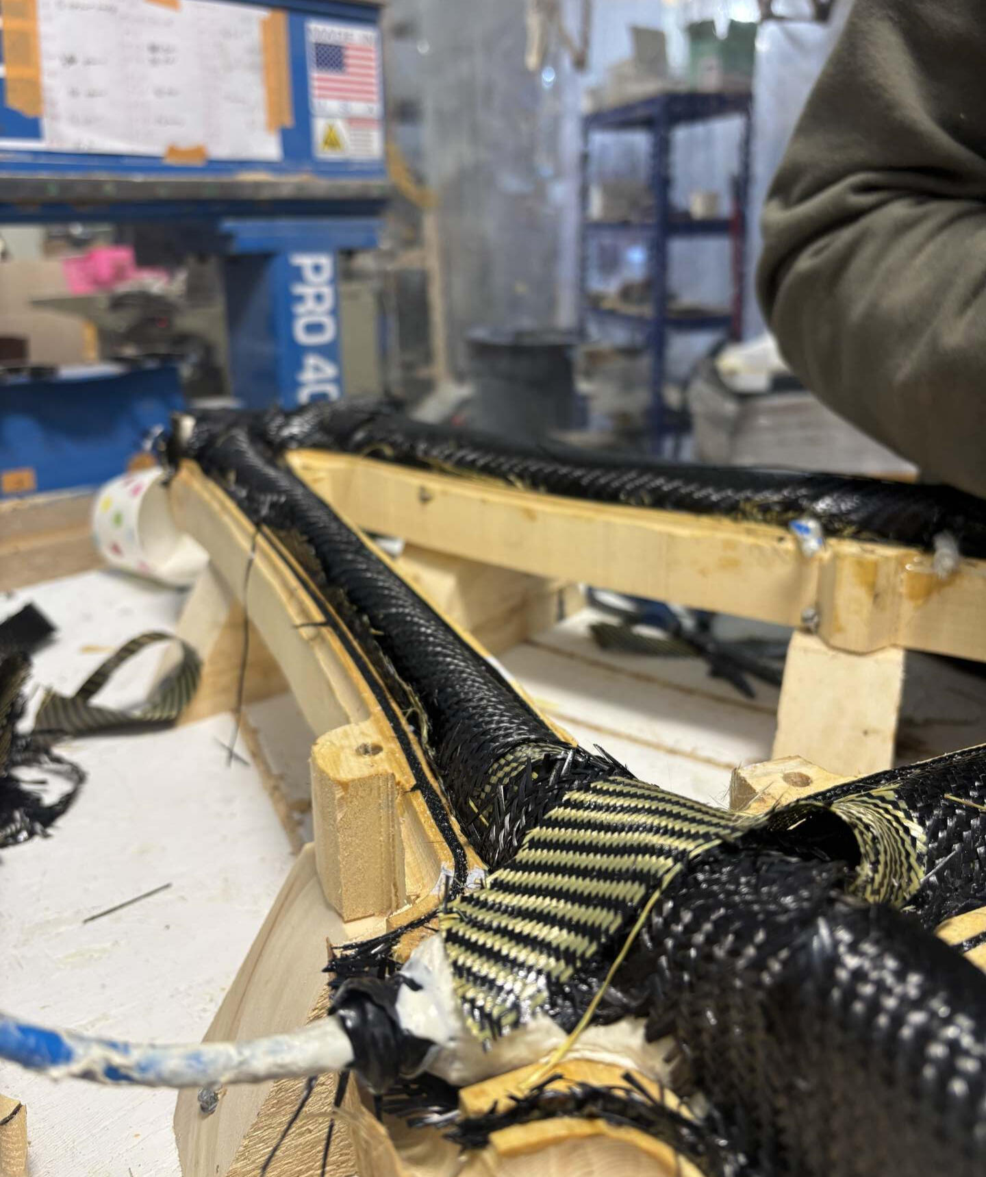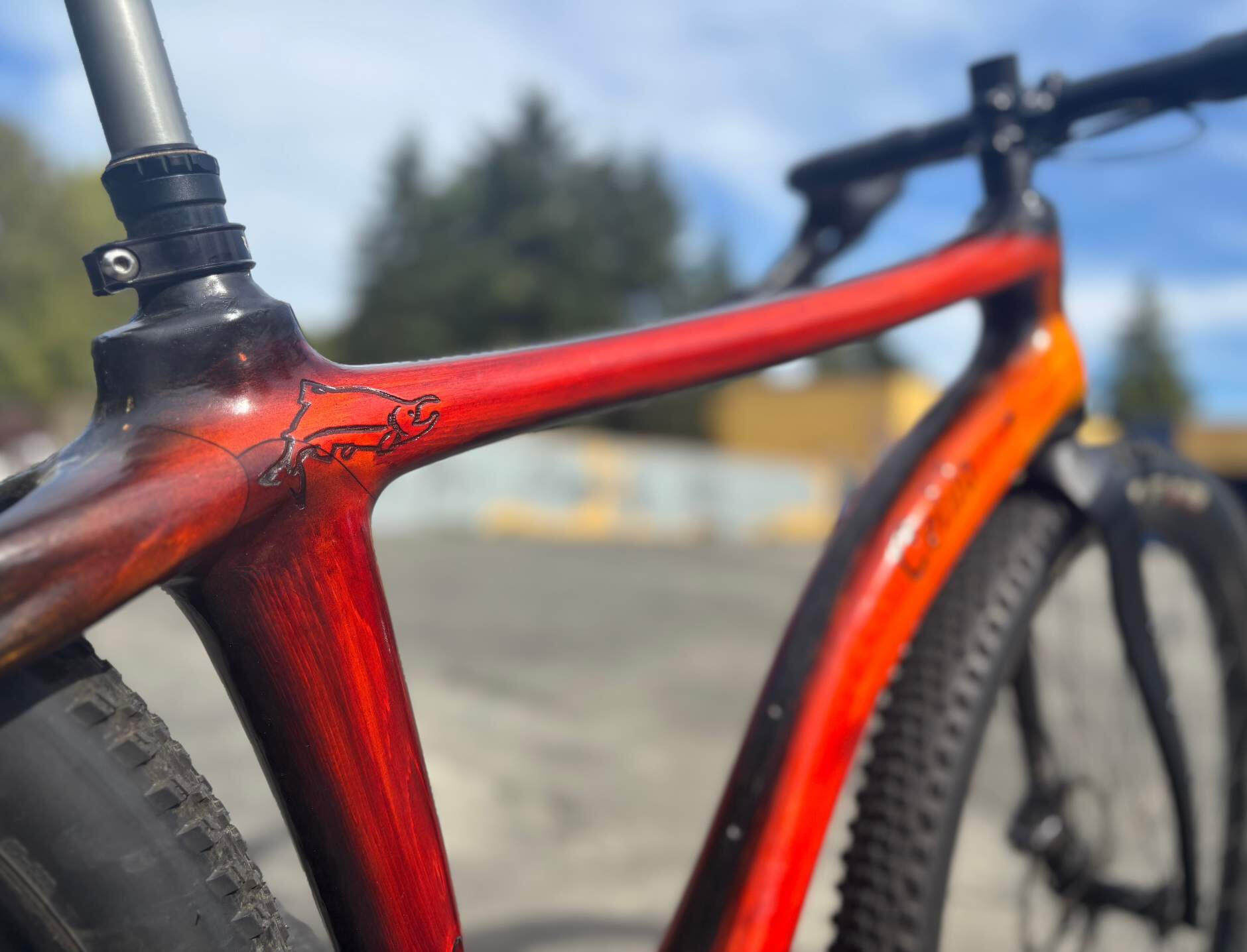 You may have seen wooden bikes before: bamboo lashed at the joints, laminated strips glued together. Our process is different. If you're here, you've almost certainly seen carbon fiber frames, but might not know exactly what goes into them. We use wood that is domestically sourced-usually from our backyard in the Pacific Northwest-along with carbon fiber and Kevlar as the primary materials in our bikes.