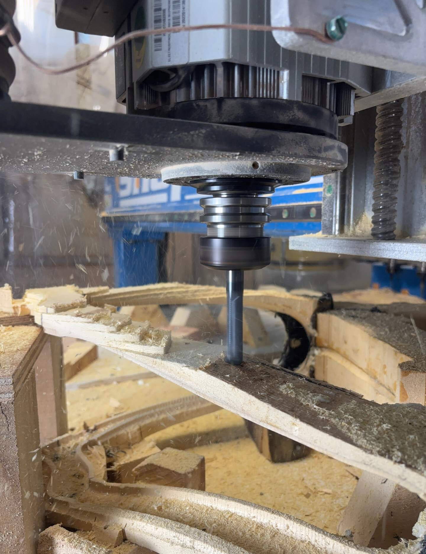 This room is the bridge between digital engineering and the physical bike-where CAD designs become tangible forms. We currently run two CNC routers: a trusty 4x4 Shopsabre that's been with us since the garage days, and a larger, more robust machine we added when we moved into our Philomath facility.